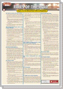 The pack also includes four laminated pages giving the complete set of official RULES OF THE ROAD (Chapter X of the National Road Traffic Act Regulations). In addition it lists the legal definitions concerning public roads and their use. |